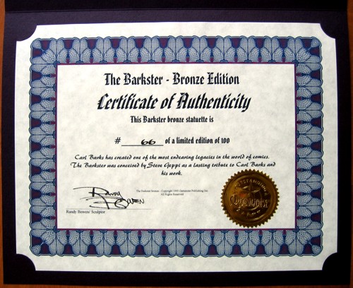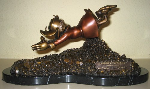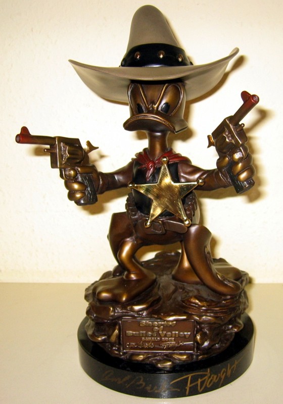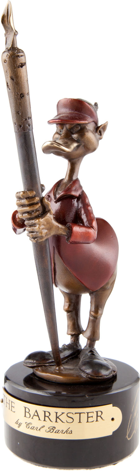 BRONZE STATUE von 100 Exemplaren der offiziellen Barkster Statue, signiert von Carl Barks und Randy Bowen kommt mit num. Zertifikat, num. Video und Original Box. Zustand : neuwertig