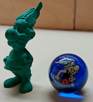 Gummi Figur + Glaskugel![]() grüne Asterix (Radier)-Gummi Figur Pelikan 1991 Größe : 6 cm hoch, guter Zustand und Asterix Werbe-Glaskugel ca. 2,5 cm Durchmesser Preis : zus. 5 € + Versand |