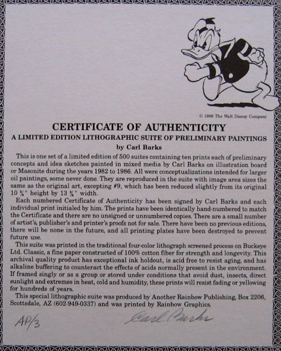 LITHOGRAPHIC SUITE OF PRELIMINARY PAINTINGS by Carl Barks